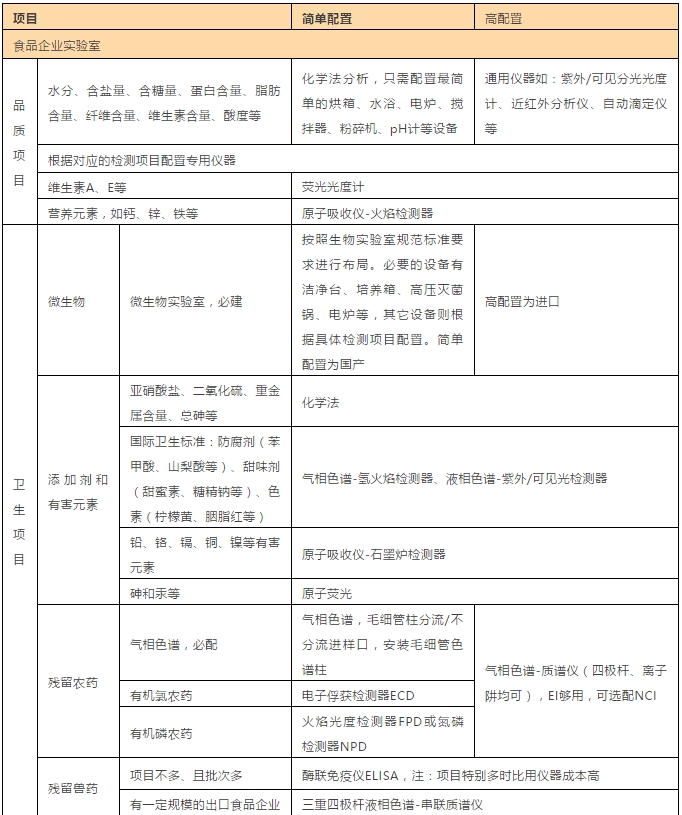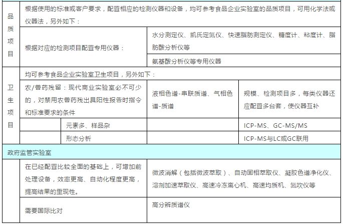 企業實驗室可根據生產的產品品種、檢測項目的多少和生產規模的大小設置,實驗室儀器設備的配置也可繁、可簡。對于這樣的實驗室,儀器設備的配置能滿足企業產品品質檢測就行了。