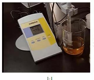 用大約175 mL的lmol/L氫氧化鈉溶液調節pH至7.2 (圖1-1、1-2), 用蒸餾水稀釋至1000 mL后貯存于冰箱。
