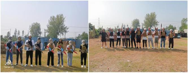 開場,伙伴們在教練的帶領下,參加了真人CS項目。穿上配套服裝,拿好道具,一個個殷姿颯爽,等待著雙方場上的英勇對決。參賽選手被分為2組,一組被分為2對。賽前,參賽選手仔細聆聽著教練的講解;賽場上隊友們相互配合,分工協作,有沖鋒的,有掩護的,時而聚在一起商量對策。